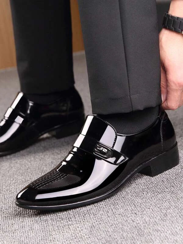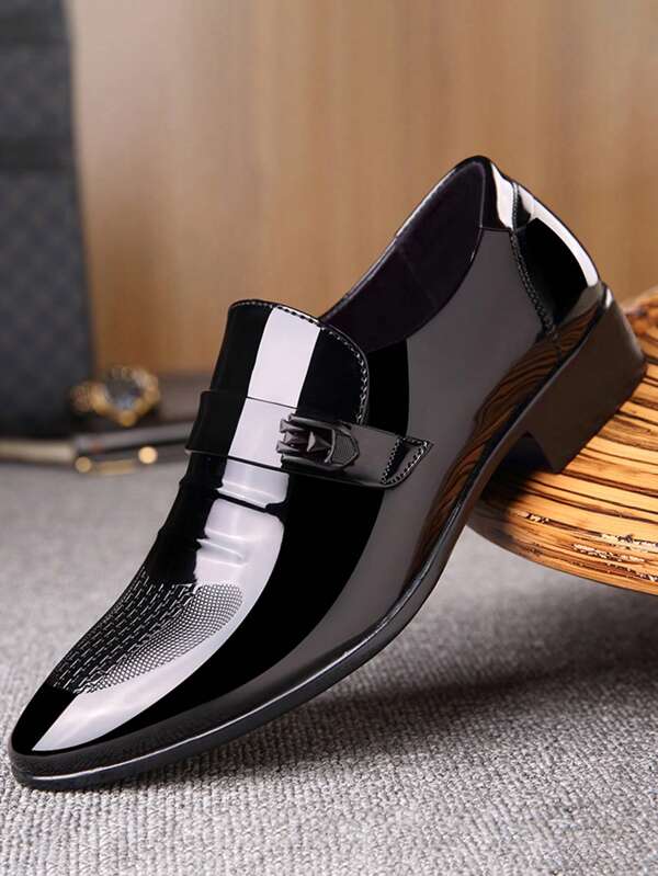 Men Metal Decor Artificial Leather Dress Shoes Black